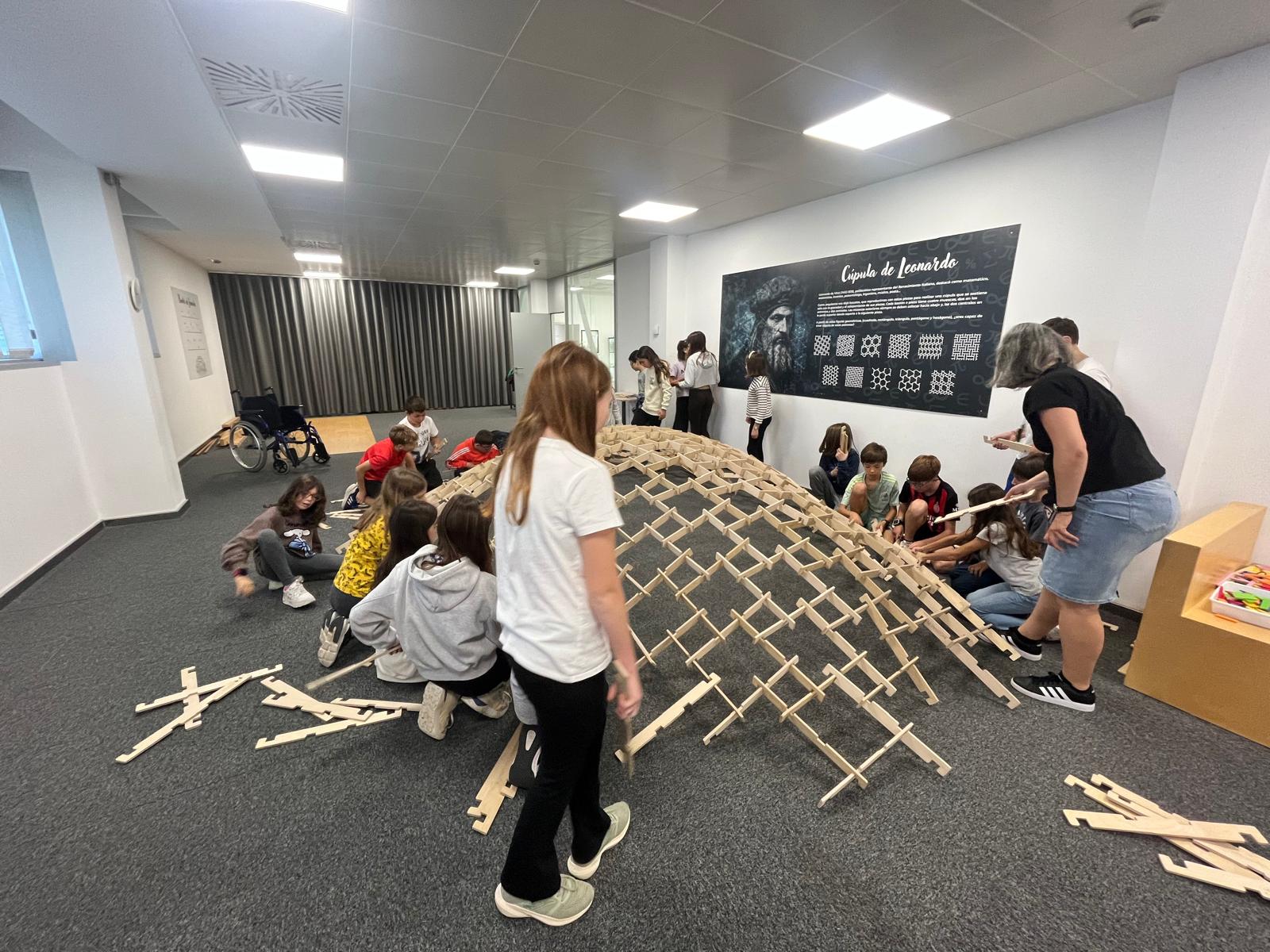 En primer lugar, visitamos el Museo de las Matemáticas, donde nos dividieron por clases y realizamos diferentes actividades. Descubrimos que muchas cosas se pueden resolver con las matemáticas. Lo que más  nos impactó fue  que, sin clavos ni tornillos, pudimos fabricar una cúpula en la que pudo meterse todo el grupo y un puente estable, tan resistente, que pasó una clase entera por encima y no se derrumbó.