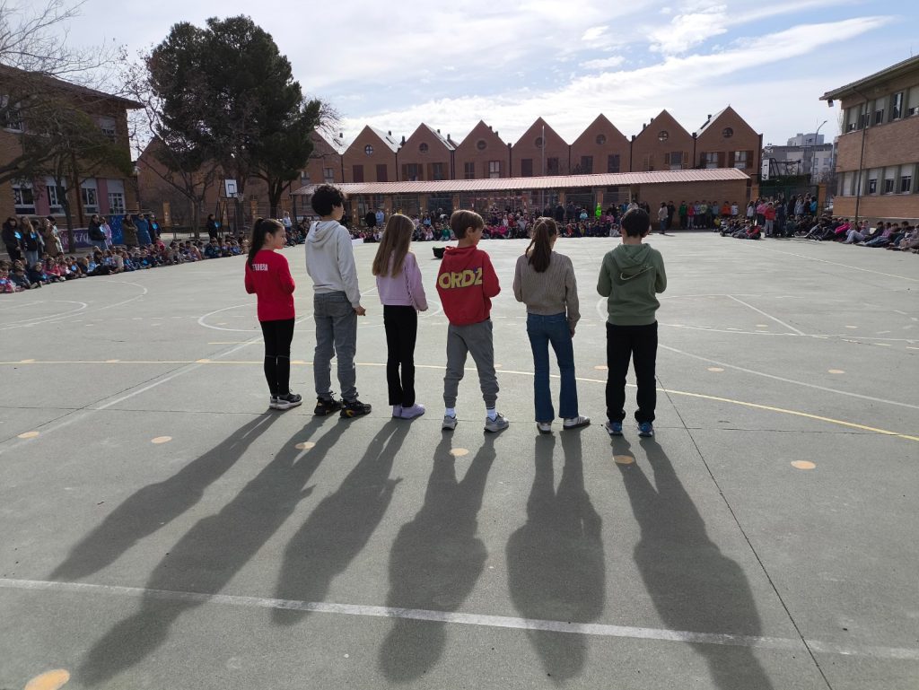 El alumnado de 6.º de Educación Primaria dio comienzo al acto, realizando una breve introducción sobre el significado del Día Escolar de la Paz y la No Violencia y explicando el sentido de la actividad conjunta. -
