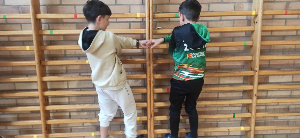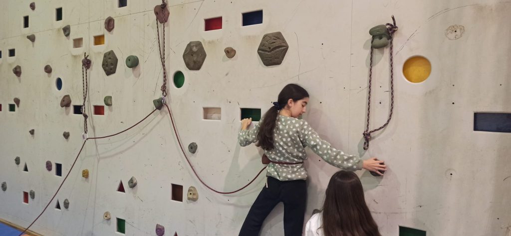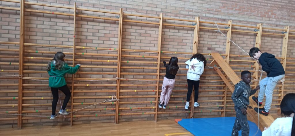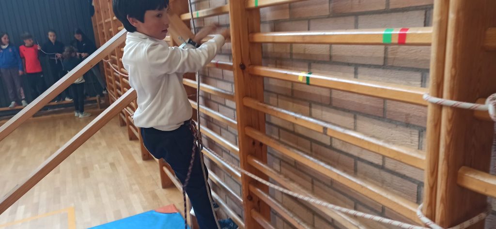 🧗‍♀️ En la parte más práctica y motriz, hemos trabajado diferentes tareas de trepa en espalderas y actividades de escalada horizontal en el rocódromo del centro.